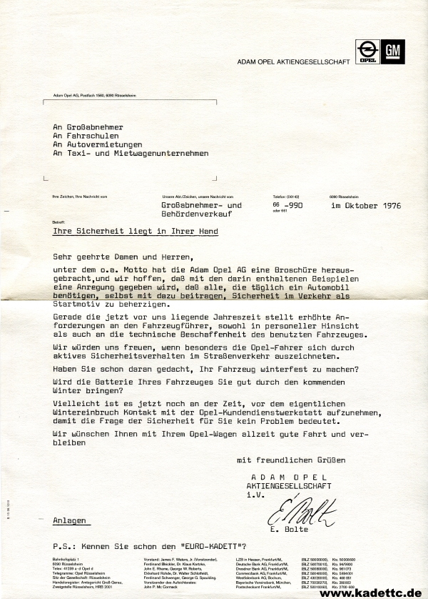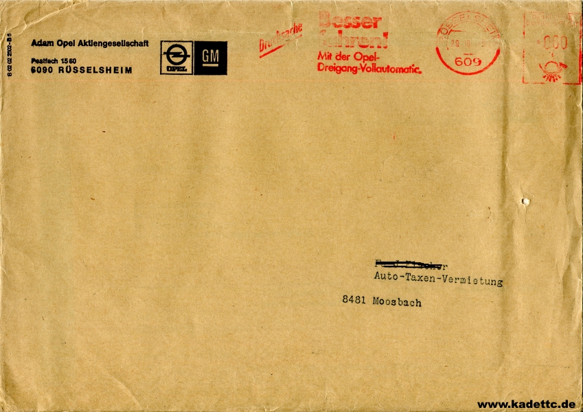 Folgendermaßen wurden die Unterlagen verschickt. Wie man sieht gleich mit Stempel und Werbung für 3-Gang Automatik von Opel.