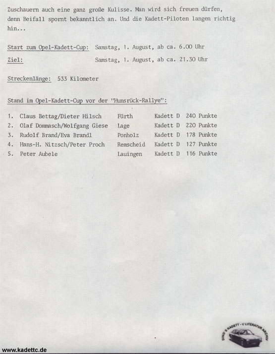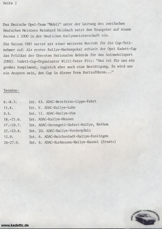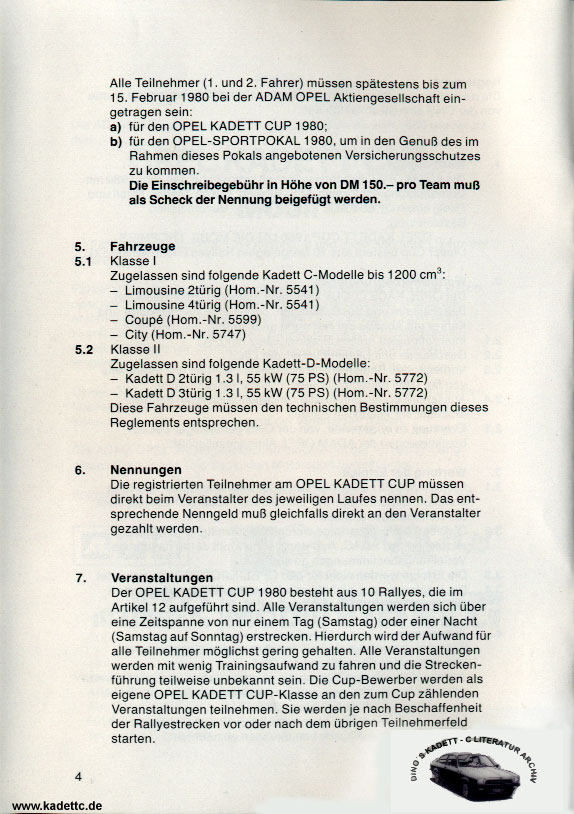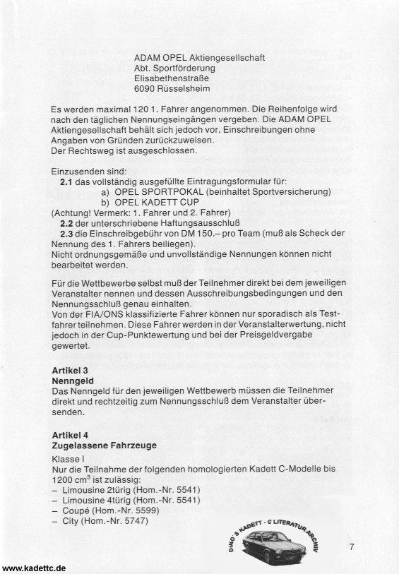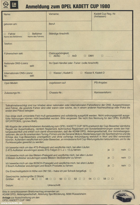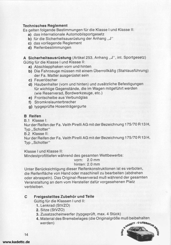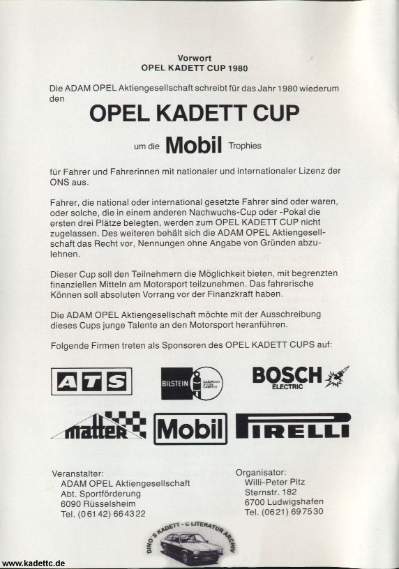 Hier die original Ausschreibungsunterlagen und andere Infos zum Kadett Cup, danke an Dino dafür !