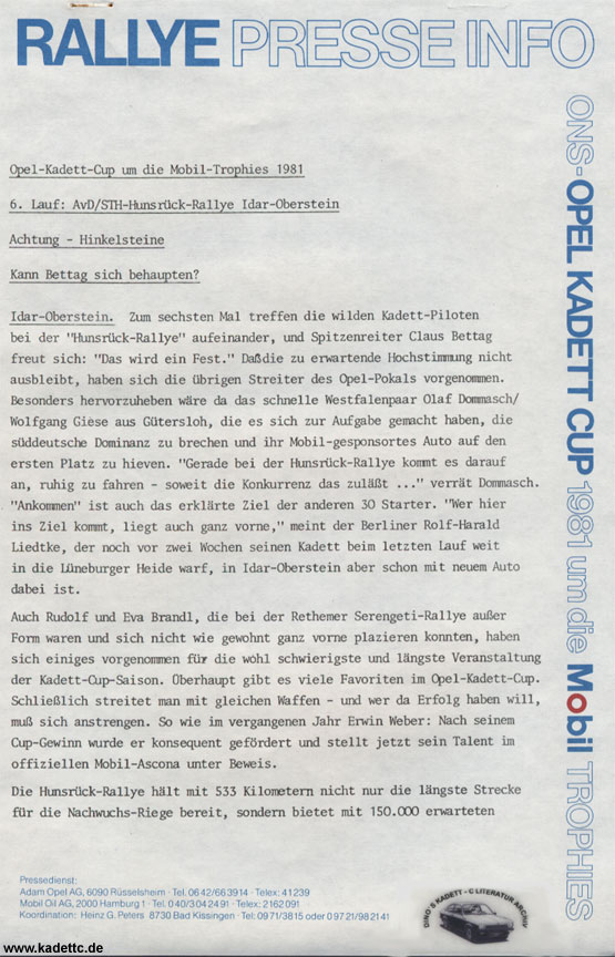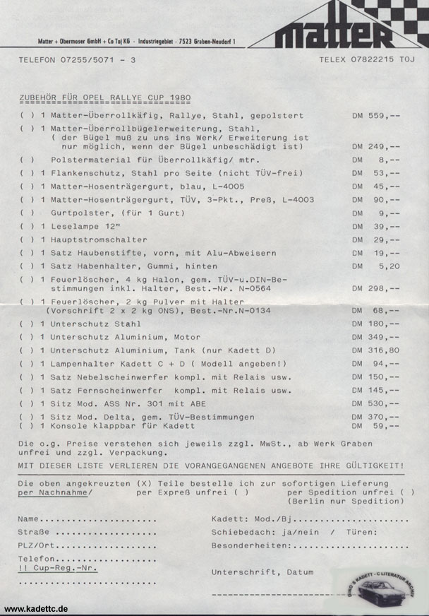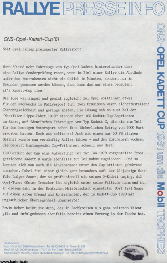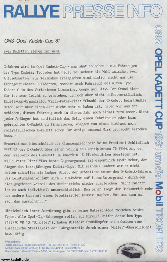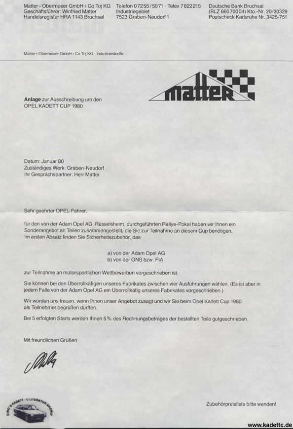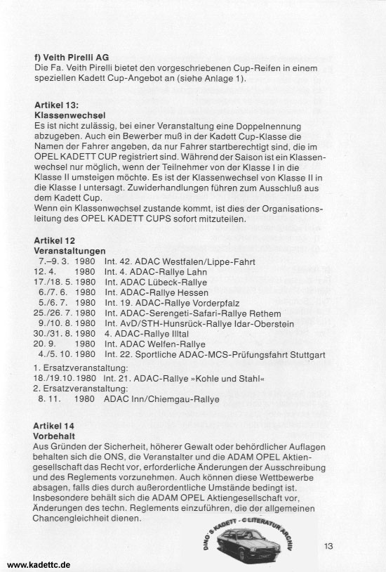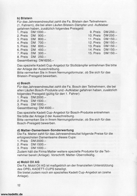 Hier die original Ausschreibungsunterlagen und andere Infos zum Kadett Cup, danke an Dino dafür !